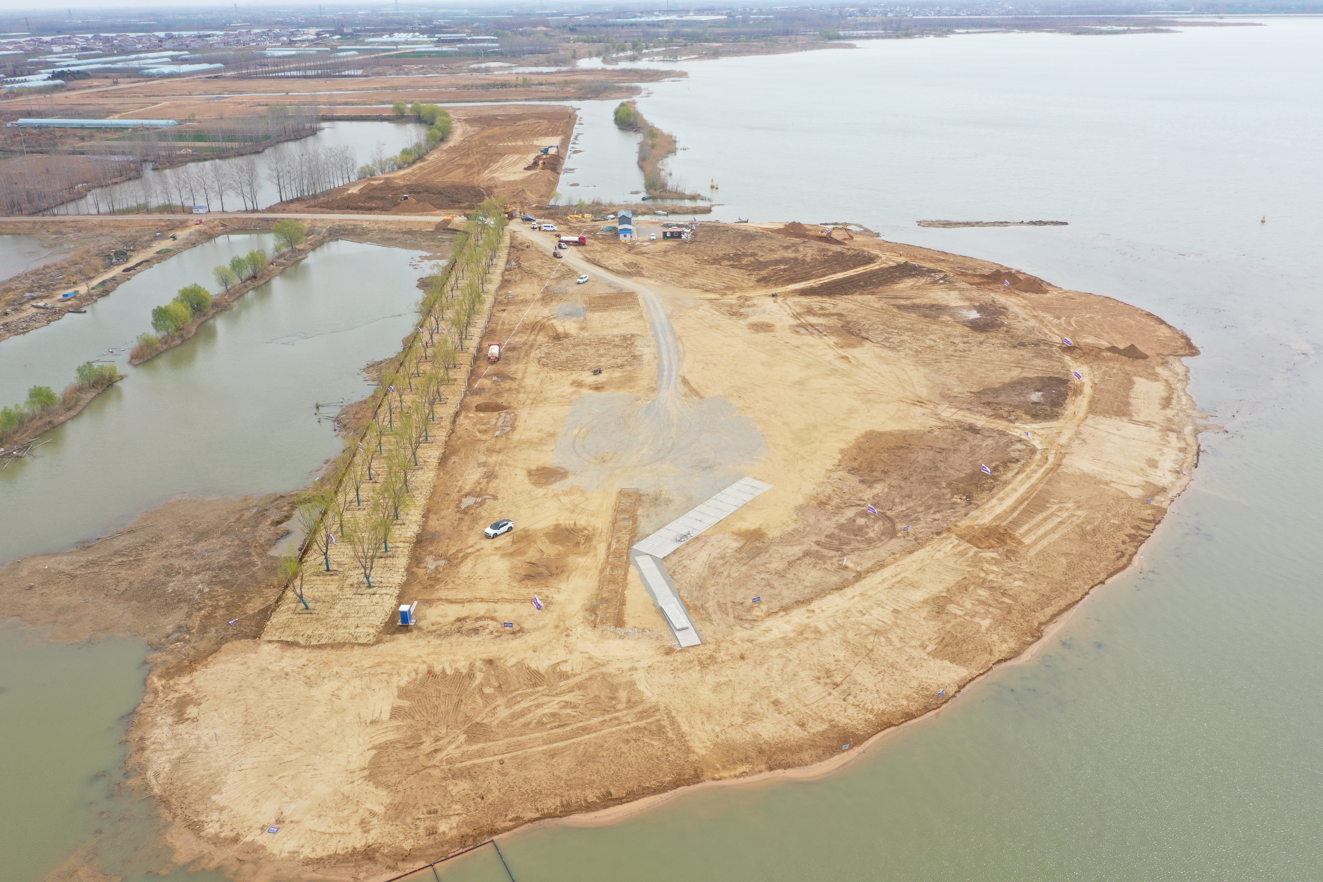 在石梁河水库生态修复项目的施工现场,机声轰鸣,在现场管理人员的有序调配下,20多台大型机械和100多名工人正在进行场地清表、整平和绿化苗木移栽等工作,施工现场各种机械及运输车辆往来穿梭,一派热火朝天的景象,复工建设掀起了小高潮。
