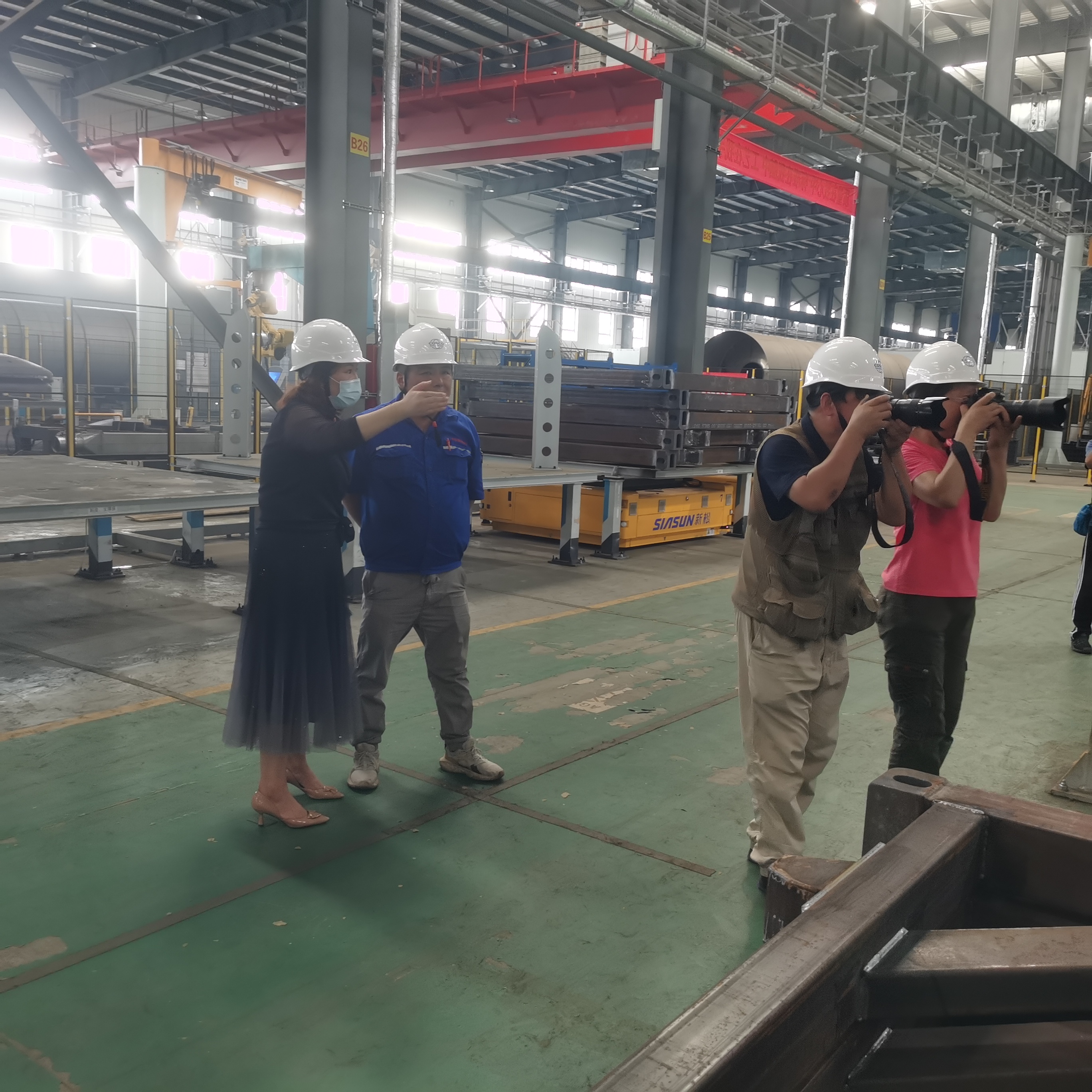 在工作人员的带领下,一行人走进了生产车间,摄影师们以饱满的工作热情投入到拍摄中,先后进入生产线各工区进行了详细影像拍摄,他们爬高上低,克服高温困难,利用相机和无人机,以专业的摄影技法、独特的视觉和充满灵感的镜头,全方位、多角度抓拍生产线上的美丽瞬间;充分展示了现代化企业自动生产流水线的新面貌、新风采。