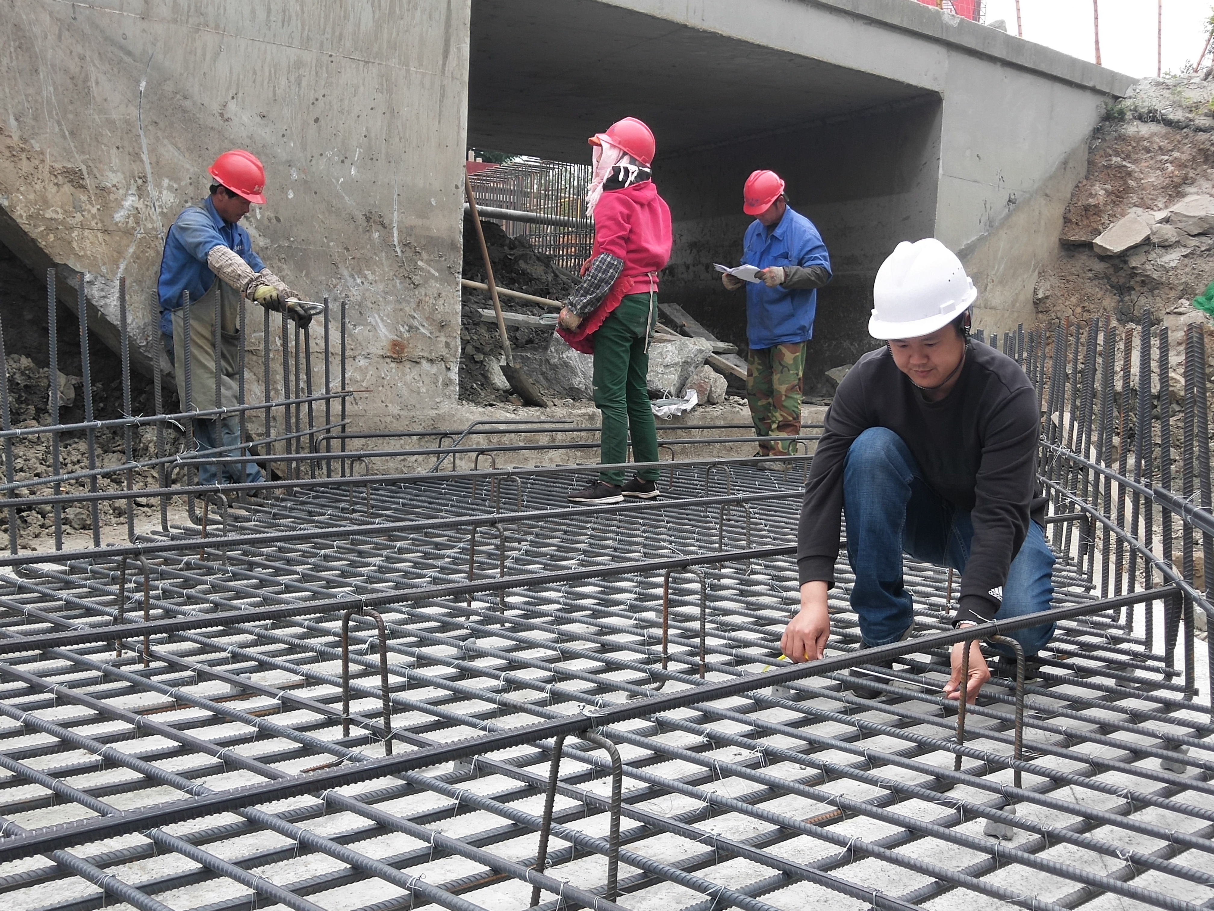 图为王兵同志在现场测量“织网”密度