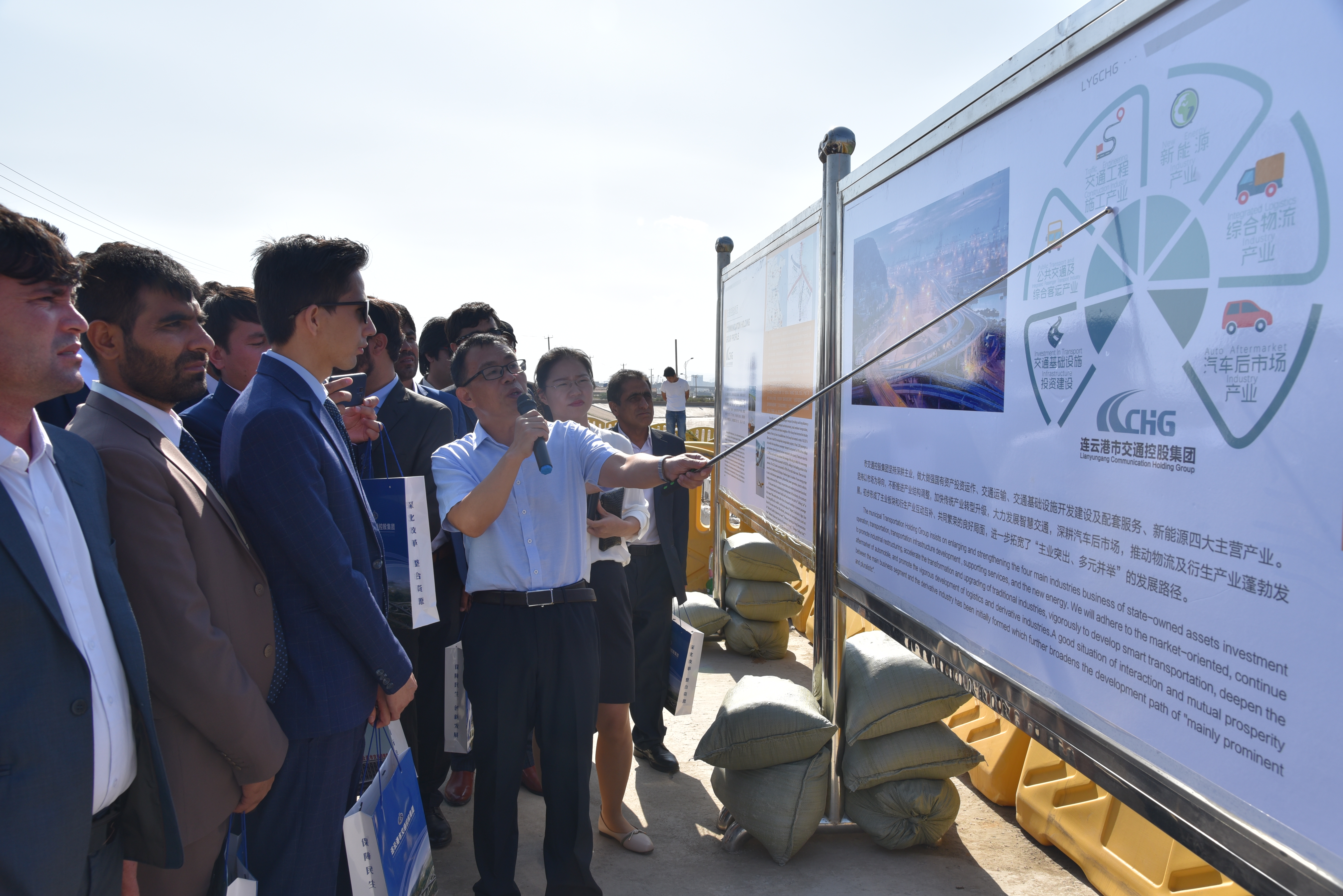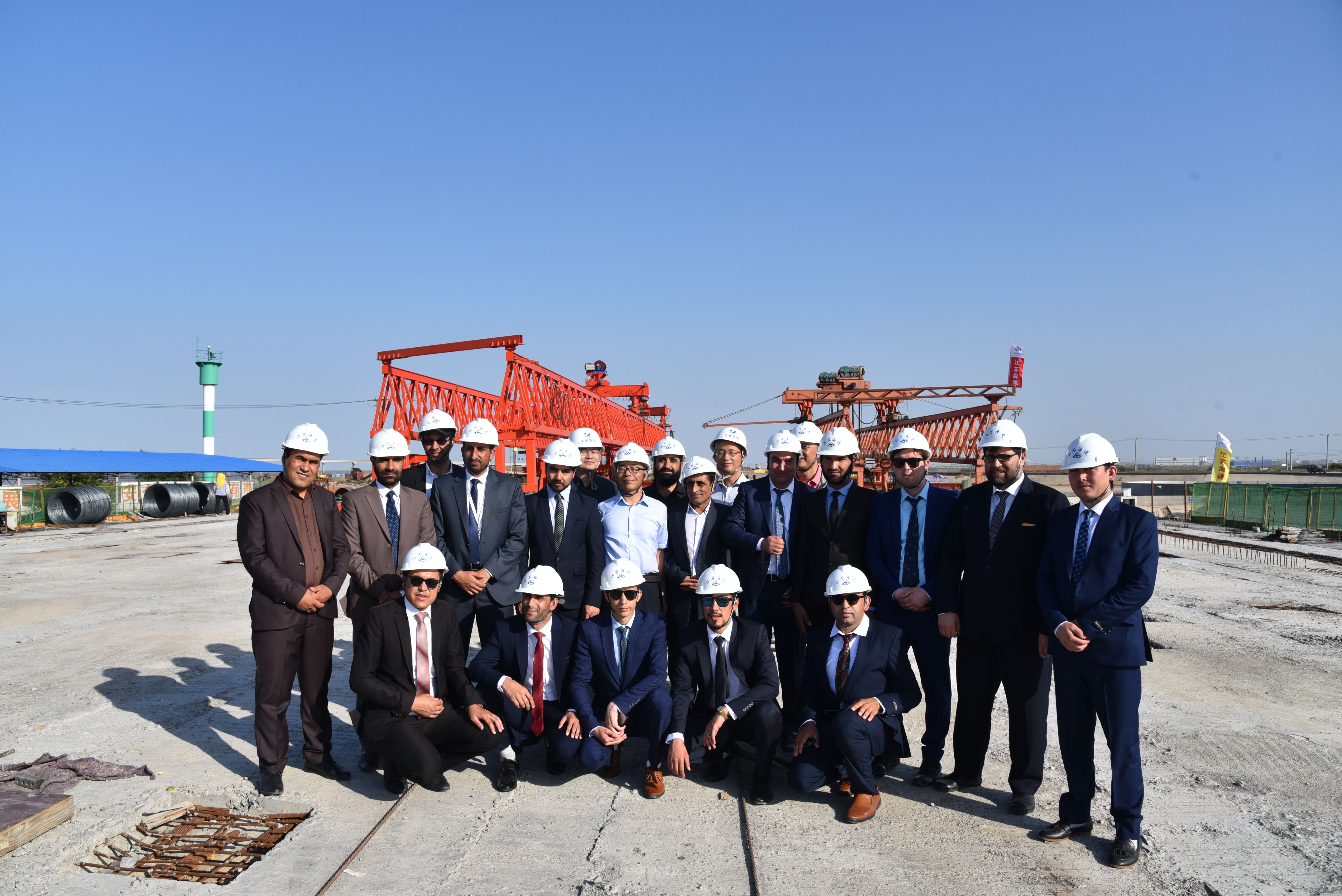 在宿徐路施工现场,海建公司董事长茅红兵对阿富汗考察团的到来表示热烈欢迎,并向考察团介绍了公司概况、产业格局以及公路、桥梁项目、国内大型施工项目、海外基础建设等。在听取简短介绍后,阿富汗专家参观了宿徐路桥梁架设安装过程。