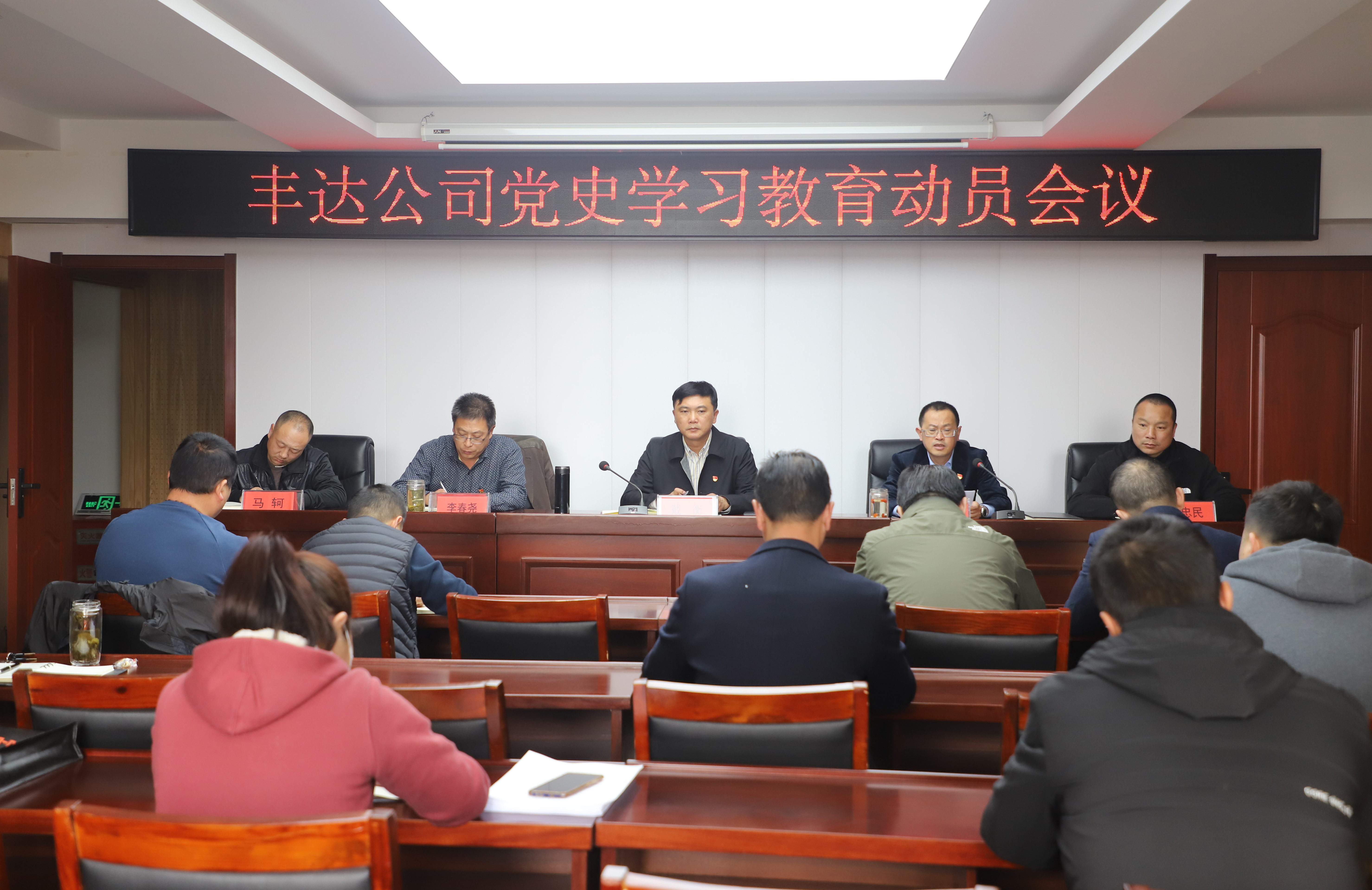 3月30日下午,丰达公司召开党史学习教育动员会。丰达公司党总支书记、董事长戴衡作动员讲话,公司总经理王梁洲主持会议。公司领导班子成员、公司中层干部、公司机关党员参加会议。
