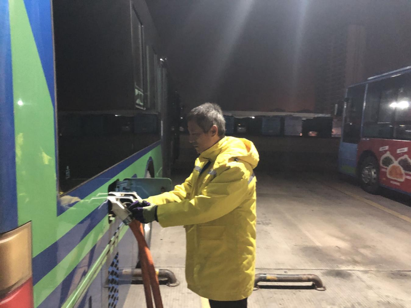 作为一个核心场站,西城充电站日均接待充电车辆近150余辆,充电量达10000度以上。深夜,董梁疏导公交车安全停放后,熟练地用右手食指按住卡簧拔出充电枪,转身插入车辆的充电接口,只听“咔哒”一声,充电桩液晶屏显示一切正常,董梁再刷卡、登记,车辆正式开始充电,整套动作可谓一气呵成。凌晨3时,早班班次车辆都完成充电,他刚走进休息室,倒了杯温水一饮而尽后,未作停留又开始巡检充电桩,对充电站的消防设施、电气线路等设备进行检查。