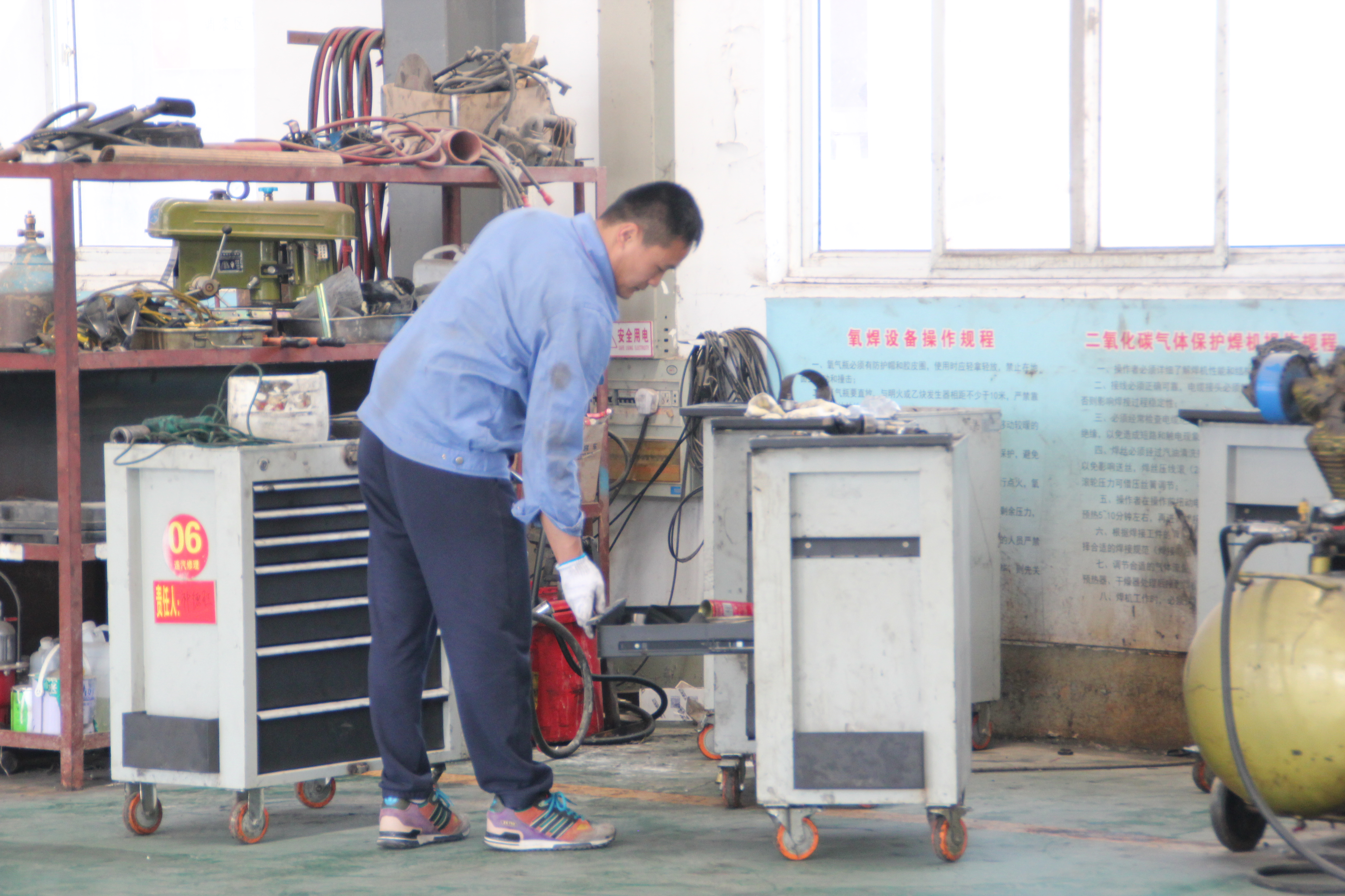 面对镜头,王国志不好意思地询问我们是否要换身衣服整理一下,原来,每天工作下来,王国志都是一脸汗水、满身油泥,累得腰酸腿疼,苦脏累不说,连身好衣服也不能穿。这个腼腆的80后修理工感动了我们,他从来不惧任何艰苦的环境,他把苦脏累作为磨刀石,始终战斗在修理厂的第一线,而这一待着就是13个春秋。