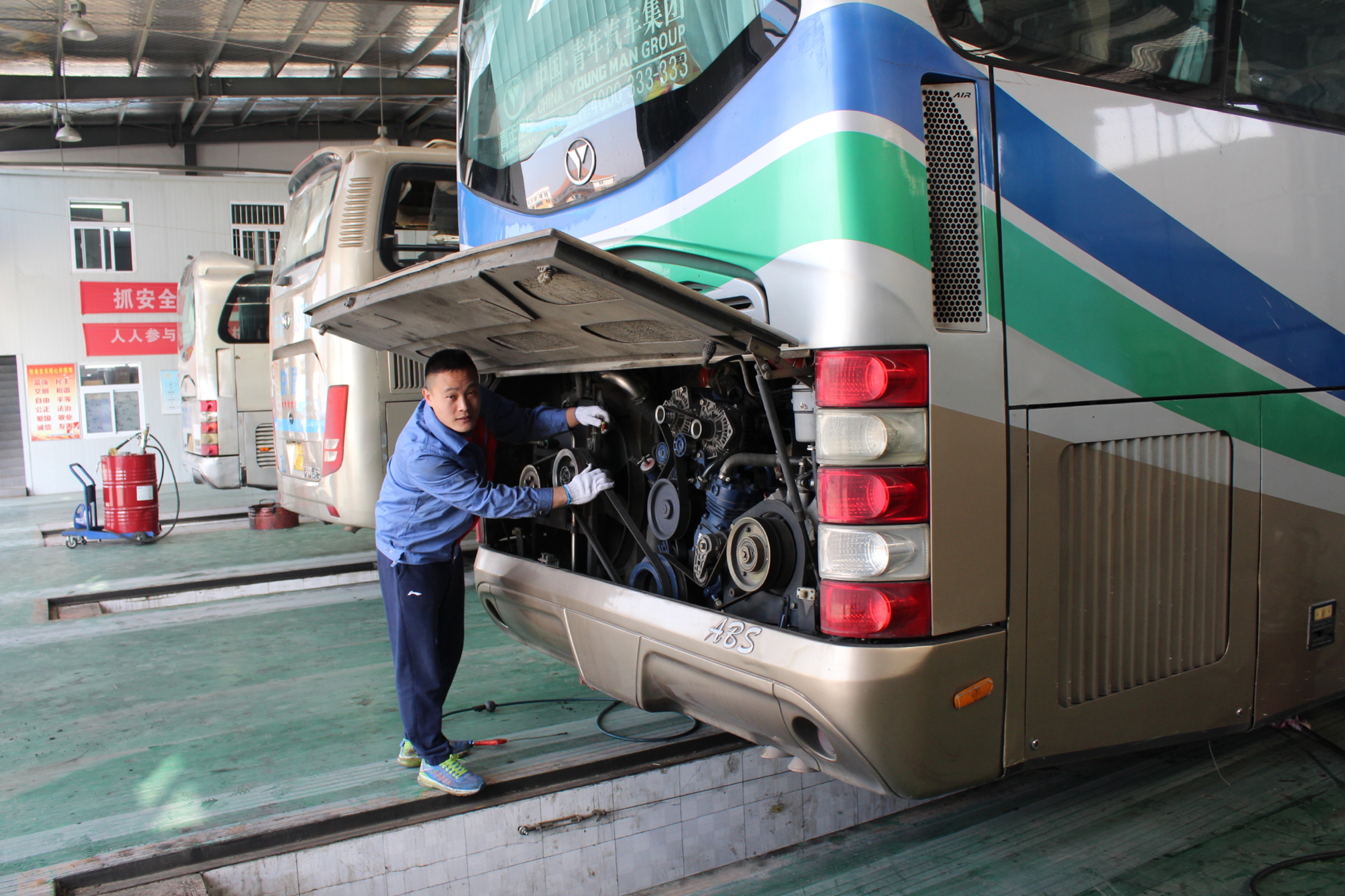 “刚到修理厂时,我几乎是零基础,连修理最简单的零件都会有点手抖。”回想起刚步入工作岗位时,王国志不禁笑了。进入修理车间13年来,从最初只能简单修理客车小零件,到目前熟练掌握最新修理技术,和很多励志故事一样,王国志的技术起点并不高。修理地沟,是王国志练就技能、打磨自我的主战场,在这里,每一步的修理工作都需要精确无误的拿捏。“客车安全运营地好不好,修理师傅的技术很关键。”王国志告诉我们,“少一个螺丝帽,客车也有可能发生侧翻的危险。为每一辆客车安检,是我们修理工人的工作,更是一份责任。”