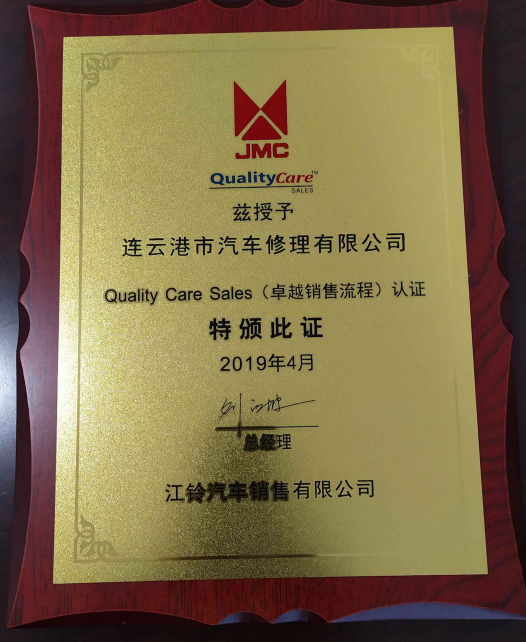 201812月下旬修理公司通过江铃汽车QCS1.5销售流程认证以来,2019420日修理公司再获喜讯,公司顺利通过江铃汽车销售有限公司QCS(卓越销售流程)认证。