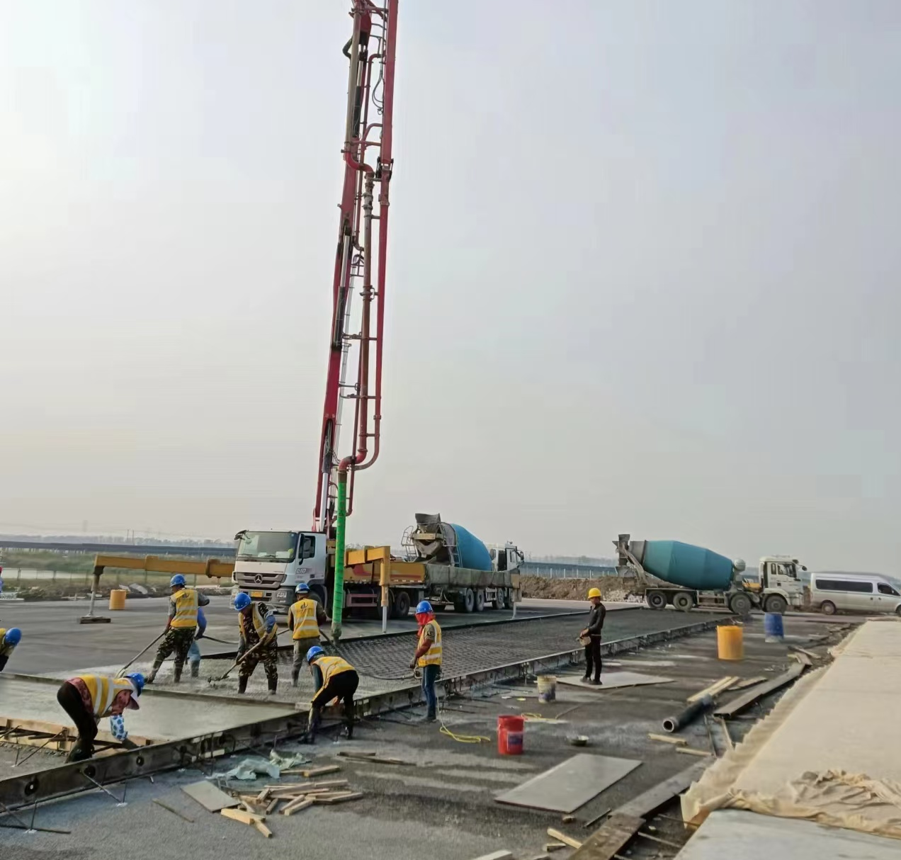 为确保本次混凝土顺利浇筑,板桥基地商混站联合项目部进行技术交底,并全程跟踪混凝土试块制作、坍落度试验,以保证混凝土质量。目前,已圆满完成连宿高速(徐圩至灌云段)21标主线收费站混凝土板块首件浇筑任务。