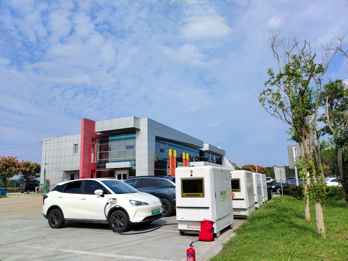 新智领航促发展,充电保障我在岗。“五一”假期,江苏多条高速迎来出行高峰,新能源汽车充电需求也随之增加。为充分满足新能源车辆充电需求,海宏科技提前部署、精准谋划,在宁沪、盐洛、沈海、连霍等6条高速24个服务区,投放了128台移动充电机器人,同时在花果山、白虎山庙会等高客流场景部署充电机器人,为公交及新能源汽车提供补电服务;每台机器人搭载209 kWh磷酸铁锂储能系统,可满足5—6辆新能源汽车补能,最快15分钟就能充入30度电,具备便捷高效充电特点;组建多支应急保障小组,24小时驻守在宁沪高速等重点服务区,随时处理设备突发状况。同时,安排运维人员通过监管平台远程实时监控设备状态,确保每台移动充电机器人处于最佳工作状态,并根据各个服务区两侧车流量动态调整机器人分布数量,极大化提高设备利用率,以科技手段助力保障质效提升。