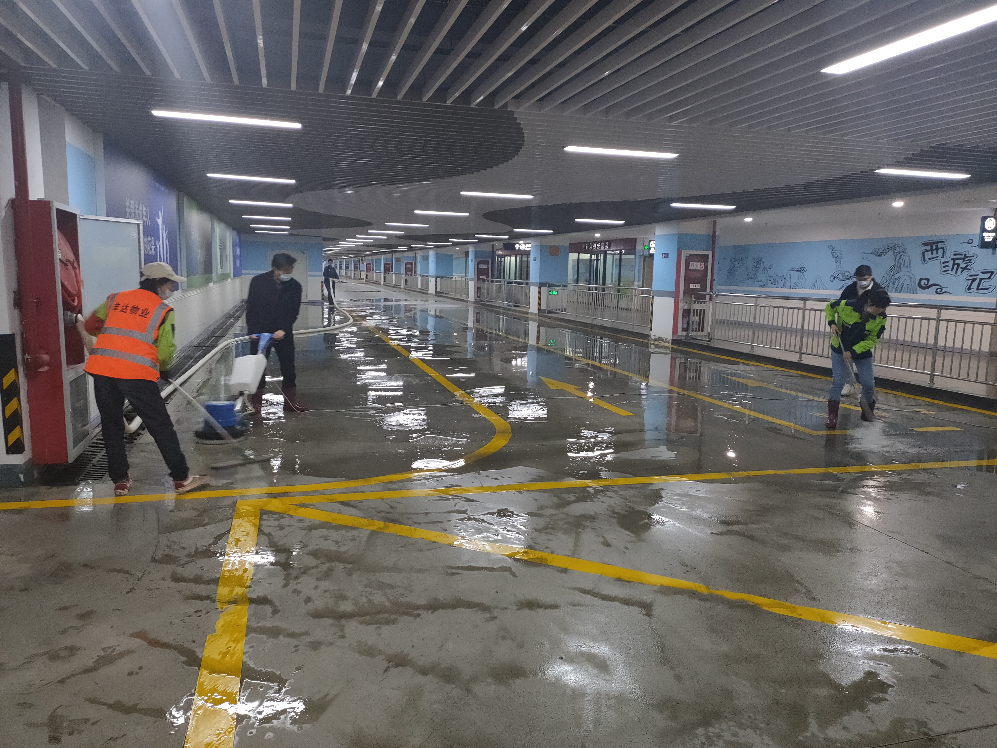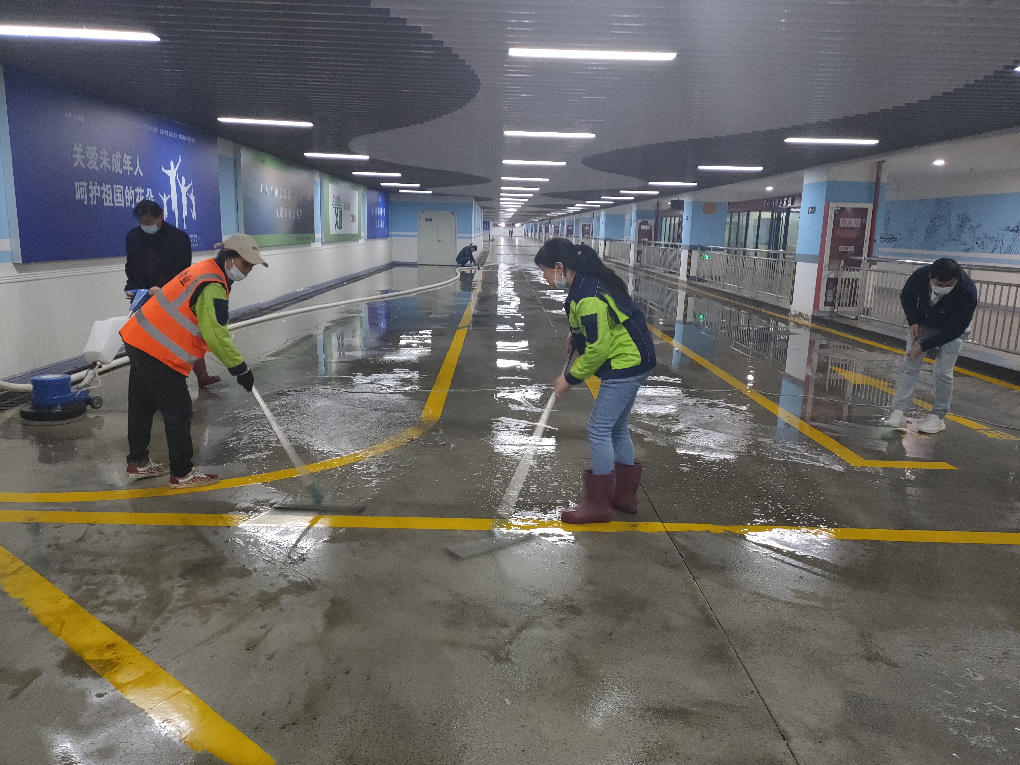 为全面提升综合客运枢纽停车场“五一”节前现场环境卫生,为广大旅客提供干净整洁的出行环境,4月29日晚,在连云港站最后一列火车运营下客结束后,丰达物业管理公司组织了10名员工,对客运枢纽地下停车场出租车道、社会车道等主要通道的地面痰迹、污迹、顽迹等进行了全面清理,清理面积近3500平米。